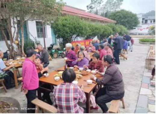 羊陂村“两委”组织老年体协成员进行聚餐,常态化给全村老人做一餐饭,关心关爱老年人的生活,提升老年生活品质。