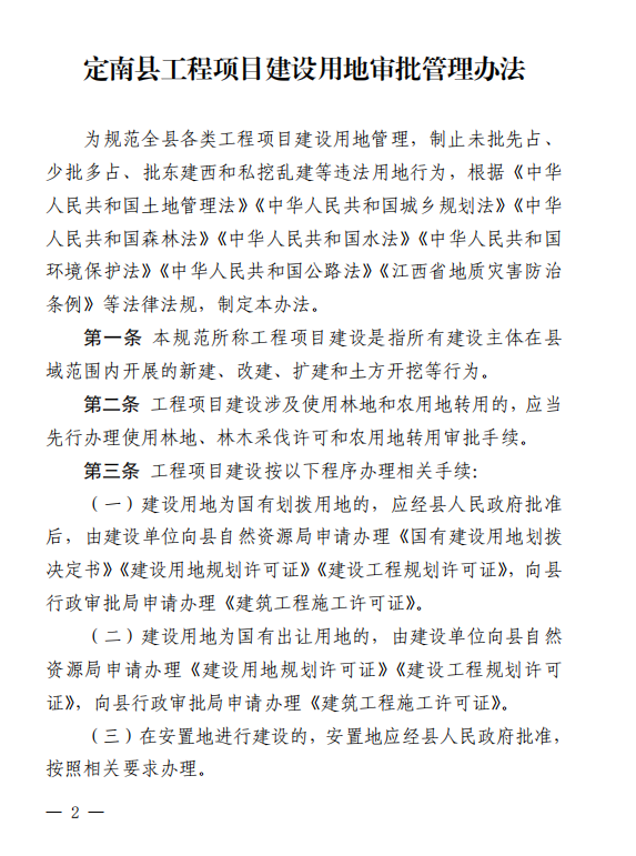 关于印发定南县工程项目建设用地审批管理办法的通知