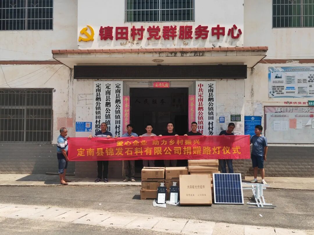 在镇田村万企兴万村座谈会上,徐泽全了解到村里还有几条村道缺少照明设施,想到儿时起早贪黑农忙“双抢”的父老乡亲,不禁感同身受,他与定南县锦发石料有限公司法人徐浪当即决定向村里捐赠路灯。