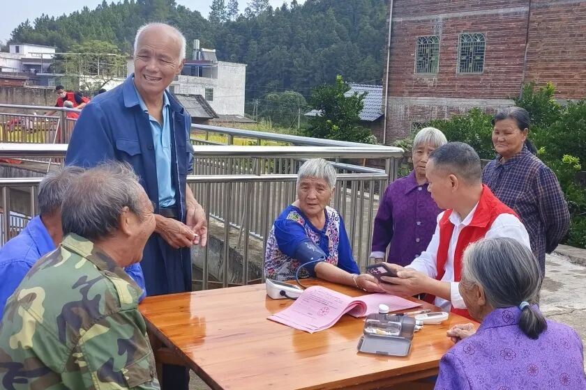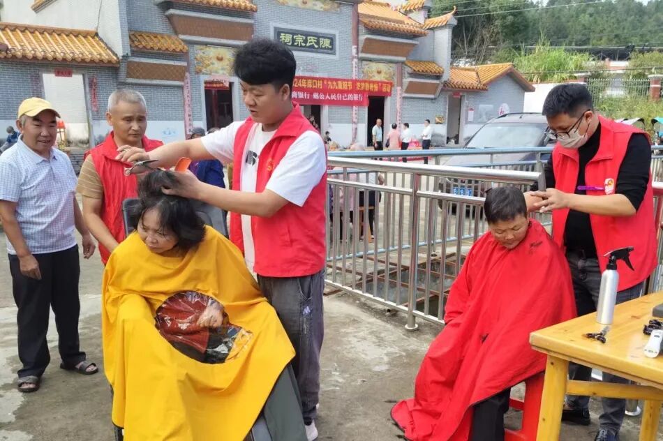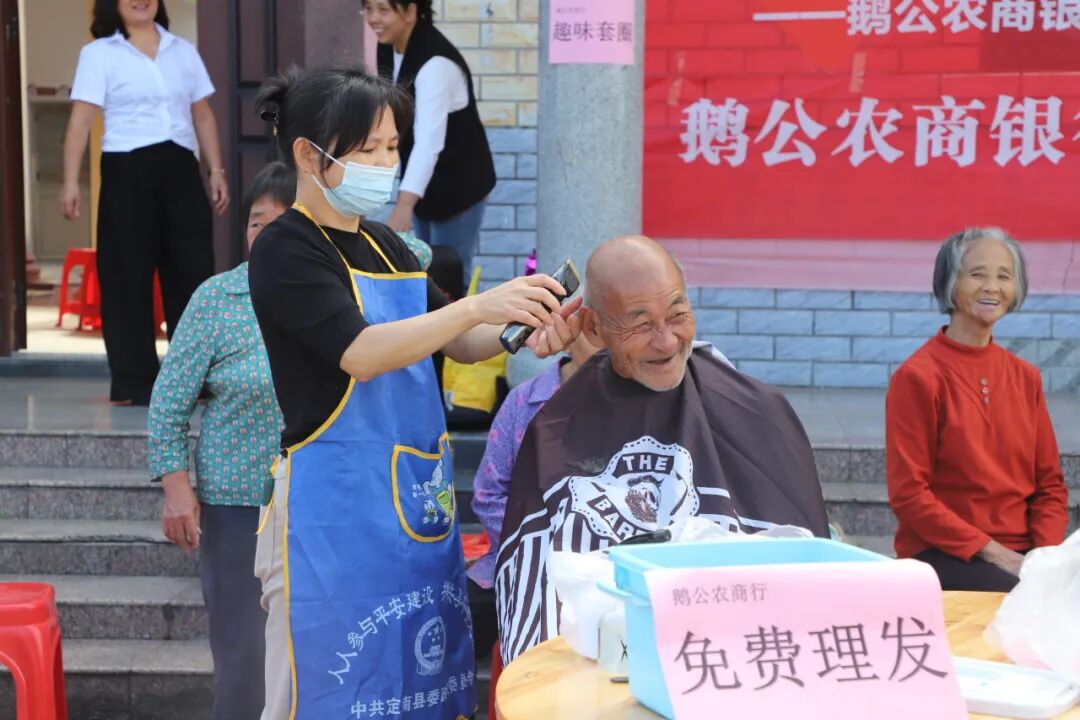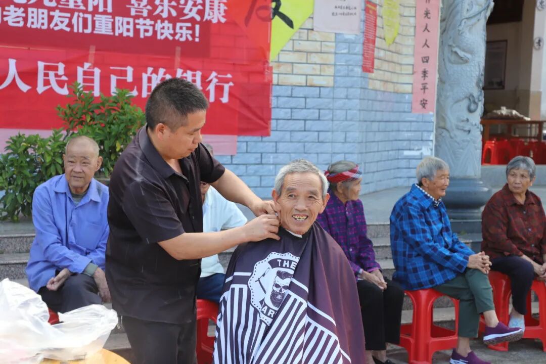 村卫生室的家庭医生借着老人们聚集的时机,为老人们细致地测量血压,全面检查身体状况,并叮嘱老人注意节气变化,保持积极心态,警惕身体异常情况,为老人们的身体健康保驾护航。志愿者们还带来理发设备,为老人精心设计发型并免费理发,让老年人享受到贴心的服务。