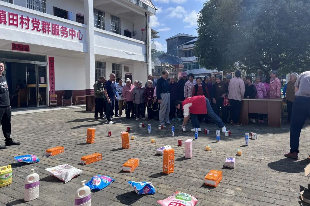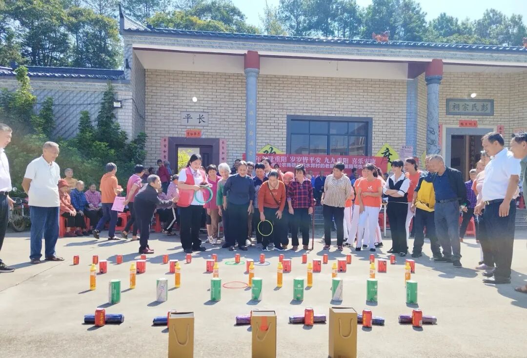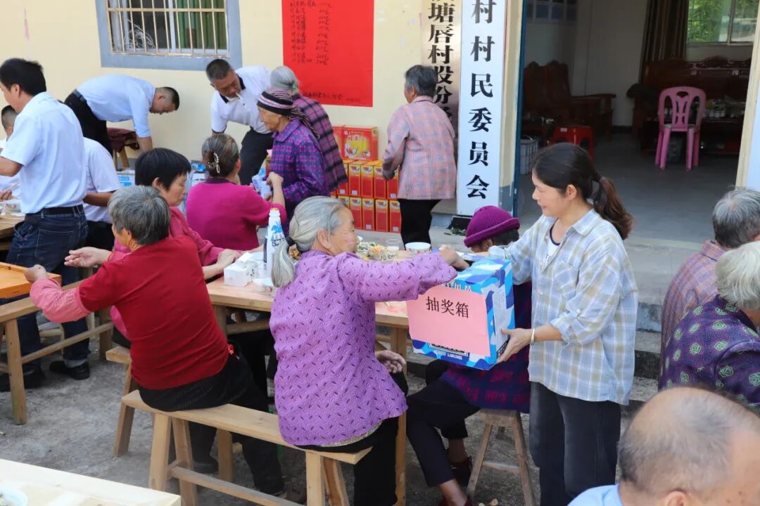 除了精彩的视听盛宴和贴心的志愿服务,各村还精心筹备了丰富多彩的娱乐活动,如现场K歌、反诈知识问答、趣味套圈、有奖抽奖小游戏等。现场气氛融洽和谐,充满了老年朋友的欢声笑语。同时,各村还为老人们准备了美味可口的佳肴,老人们围坐在一起,现场气氛热烈而温馨。