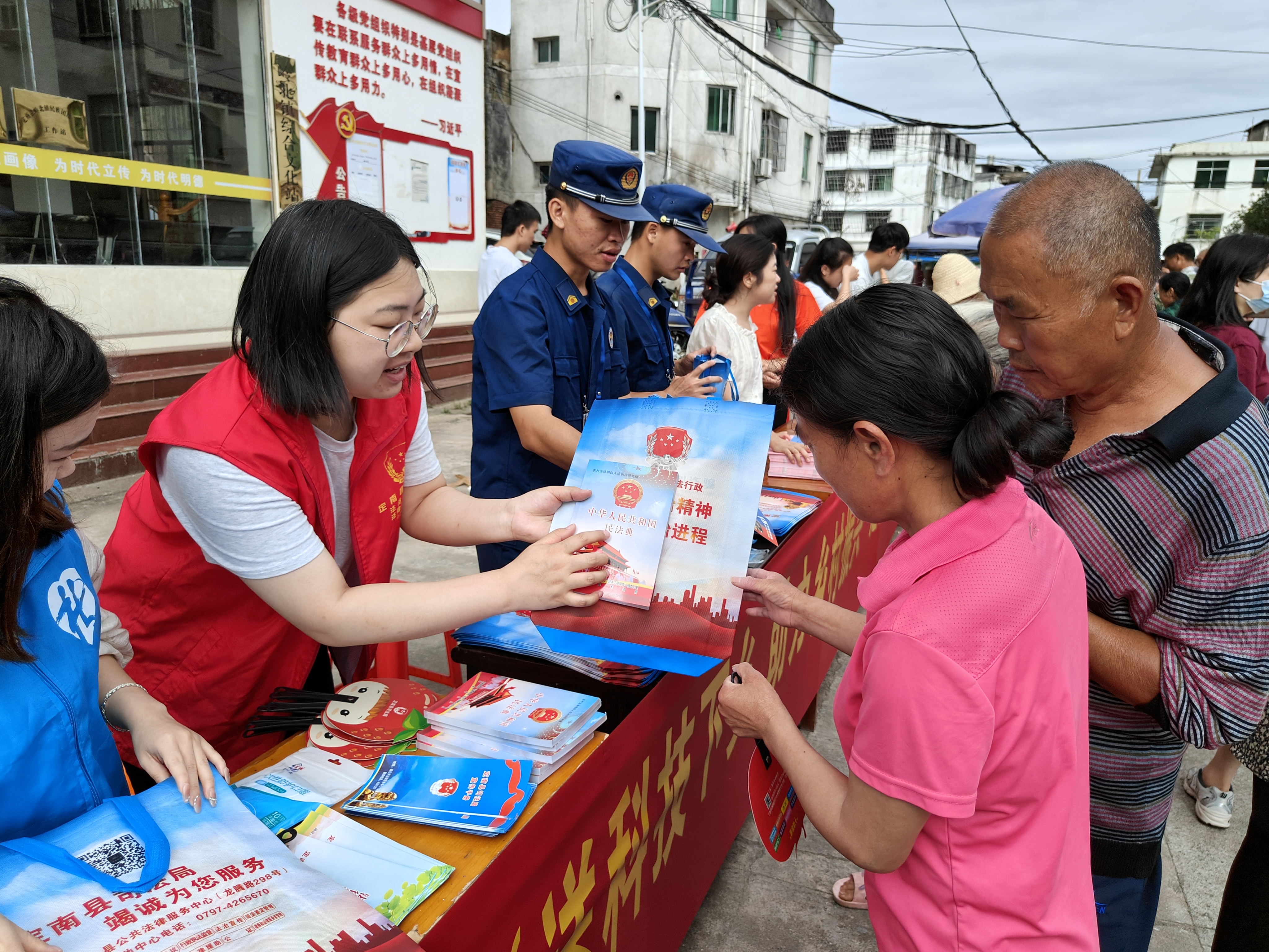 2024年7月8日上午,定南县司法局岭北司法所联合镇综治办、岭北派出所利用圩日到横江市场开展政法满意度和公众安全感“双提升”宣传活动,向来往群众发放了《提升公众安全感 你我都是主人翁》、《定南县司法局宣传手册》、《法律援助须知》、《公证办理须知》、《打击整治养老诈骗专项行动》、袋子、扇子等宣传资料,详细介绍司法行政职能并积极引导群众及其亲朋好友如果接到省民调中心测评电话时给予“安全”、“满意”的回答。此次宣传活动共发放宣传资料600余份,切实提升了群众对司法行政的知晓率和满意度,为2024年满意度工作打下扎实基础。