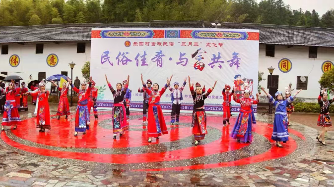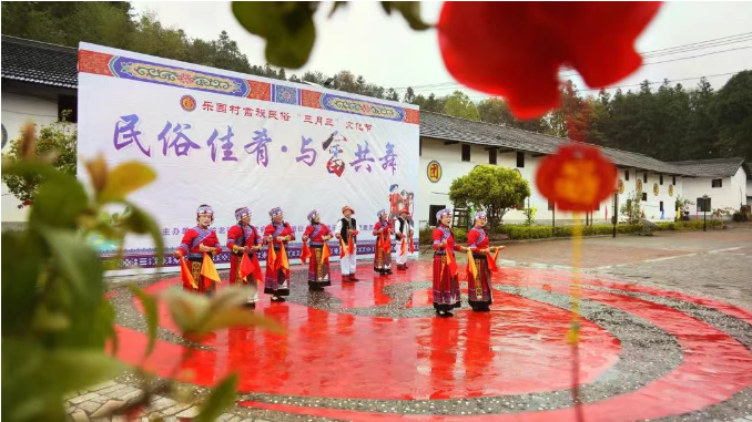 春雨润青山,山歌迎客来。3月31日,在如烟细雨的笼罩下,岭北镇乐园村迎来了一场别具风情的畲族“三月三”盛会。畲族村民们身着色彩艳丽的传统畲族服饰,跳着竹竿舞,唱着敬酒歌,迎接客人,欢庆这承载着深厚文化底蕴的节日。