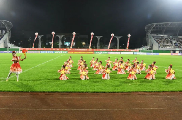 文艺晚会上,一个个精彩节目轮番登台,为观众带来了别样的视听享受。开场舞《锦绣中华》以大气磅礴的舞姿瞬间点燃了现场气氛,舞者们的每一个动作都充满了力量与美感,展现出中华大地的壮丽与辉煌。《畲村飞出幸福歌》用欢快的旋律和优美的舞姿,展现了畲族人民的幸福生活;《请党放心强国有我》则传递出青少年们的爱国情怀和担当精神;《等你在客家古城》充满了浓郁的客家风情,让观众感受到了客家文化的独特魅力;《活力定南・活力绽放》展现了定南人民积极向上的精神风貌。最后,《奋进新时代》以激昂的节奏和振奋人心的表演,为文艺晚会画上了圆满句号,也寓意着定南足球事业将在新时代奋勇前行,绽放出更加耀眼的光芒。