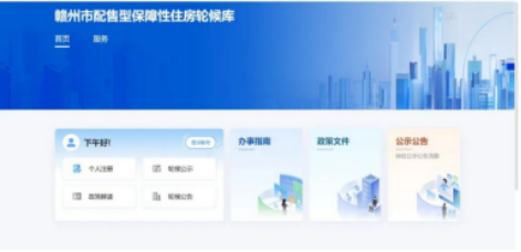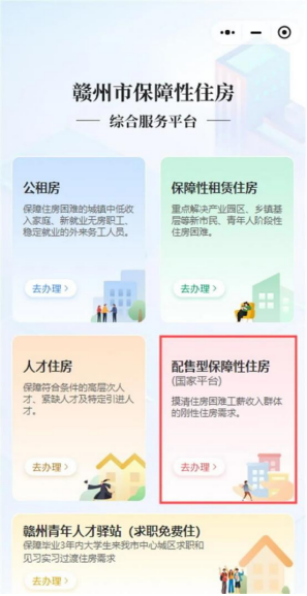 例:周某在我县某企业务工,40岁,通过“赣州住保”微信小程序——“配售型保障性住房”模块,提交身份证及配偶身份证等资料,通过资格审核后,即可纳入定南县配售型保障性住房轮候库。