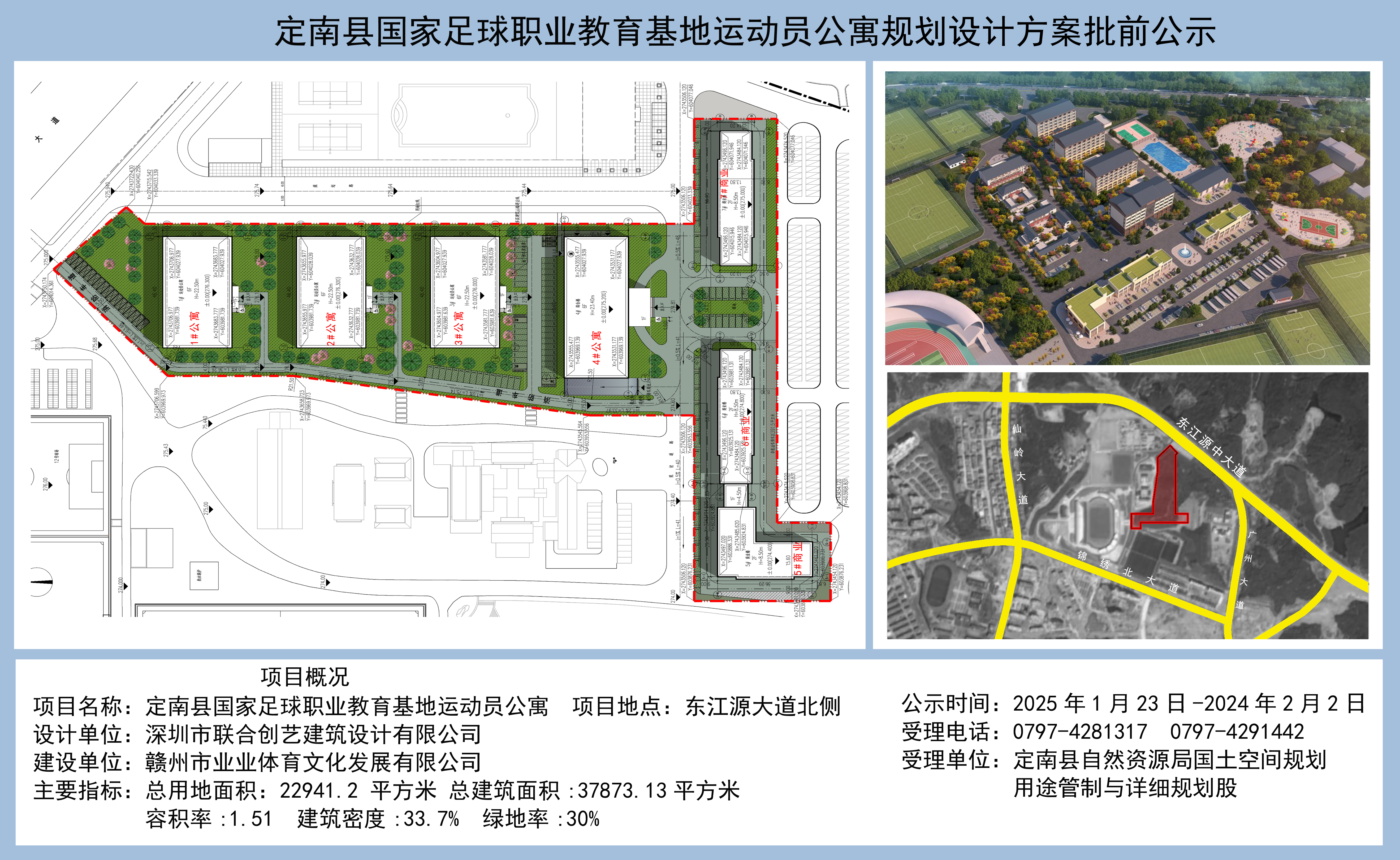 定南县国家足球职业教育基地运动员公寓规划设计方案批前公示