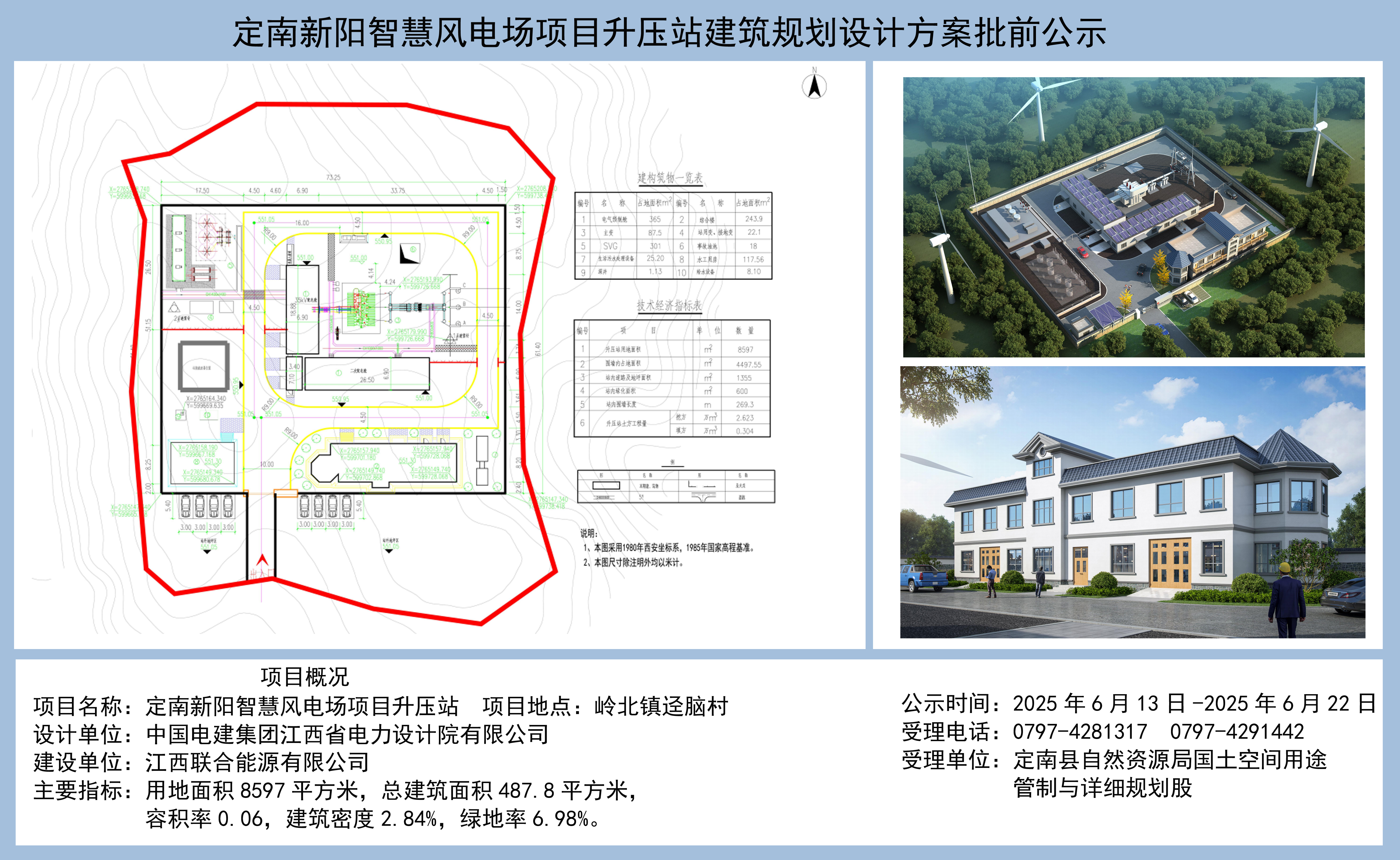 定南新阳智慧风电场项目升压站建筑规划设计方案批前公示