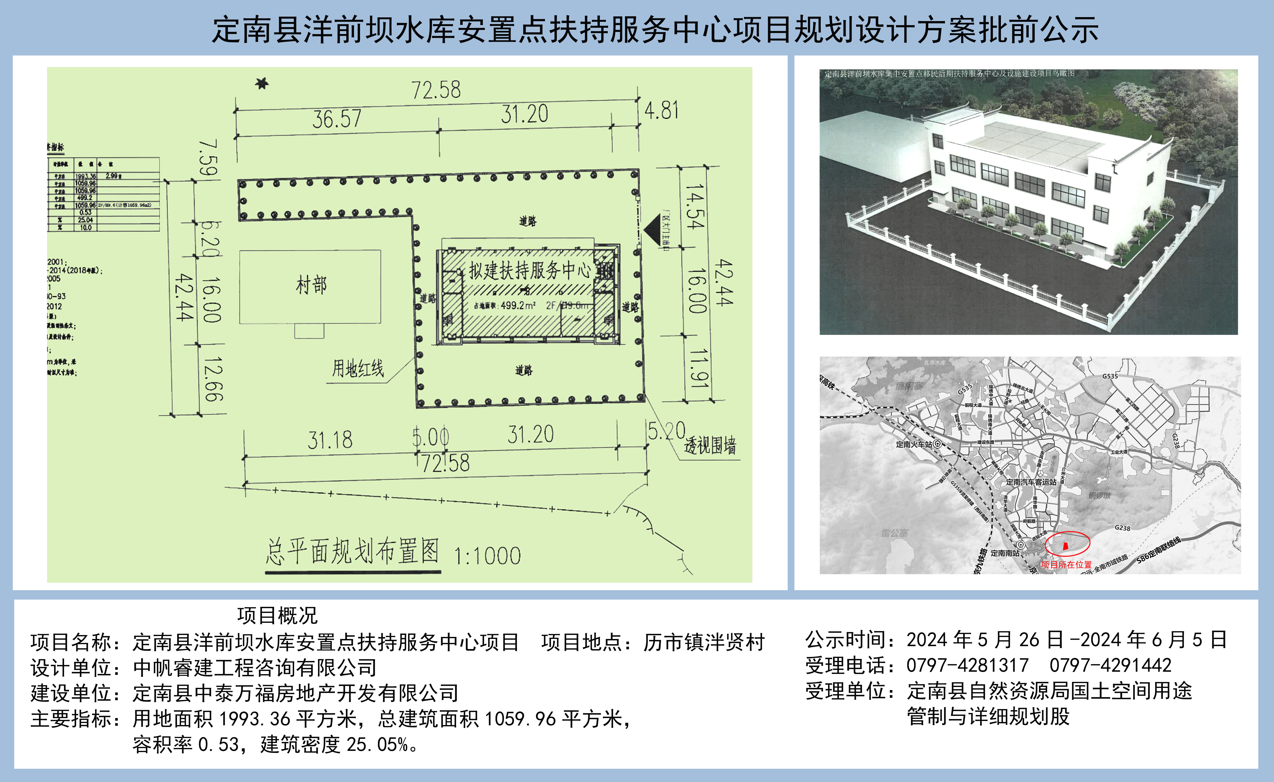 定南县洋前坝水库安置点扶持服务中心项目规划设计方案批前公示