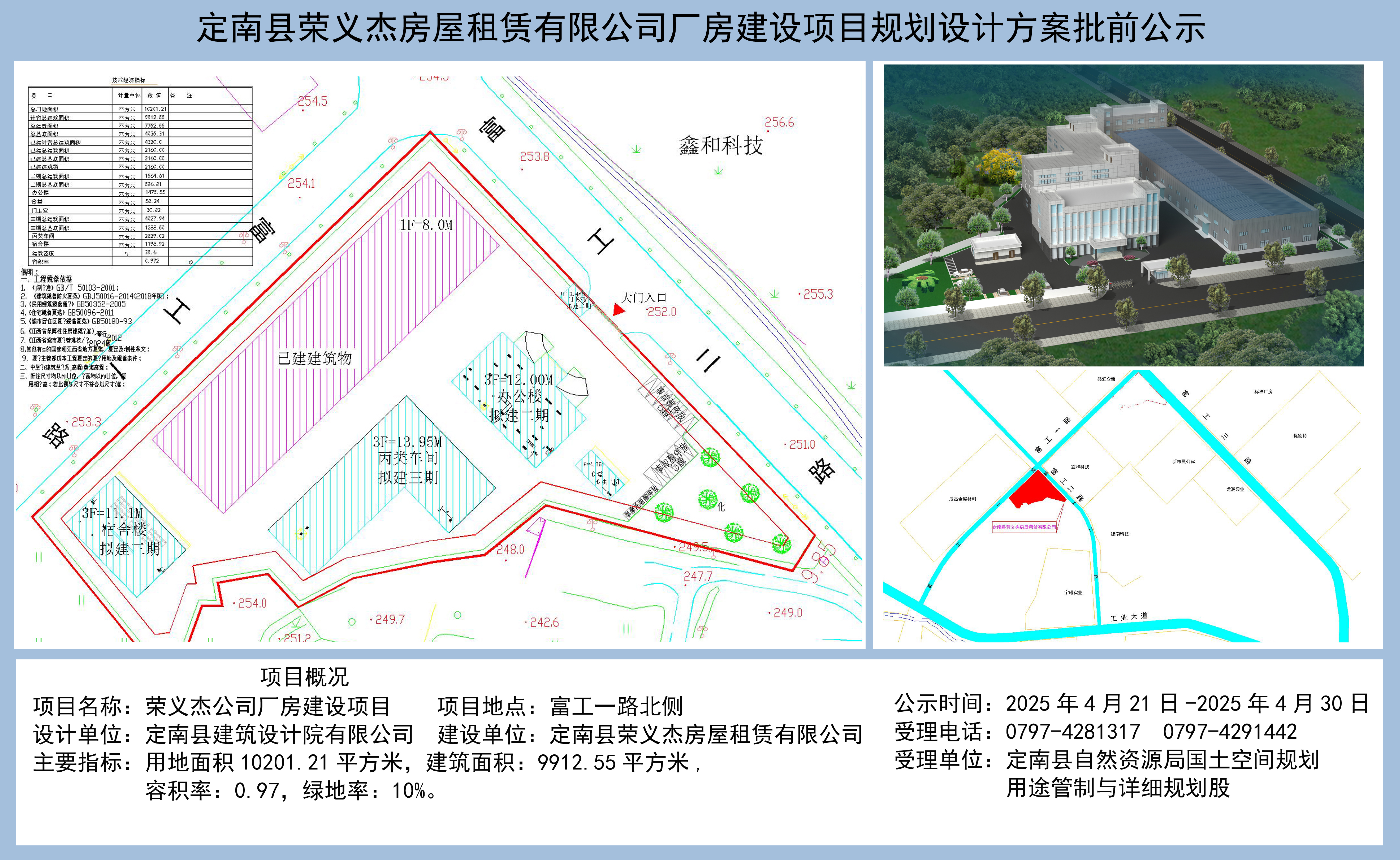 定南县荣义杰房屋租赁有限公司厂房建设项目规划设计方案批前公示
