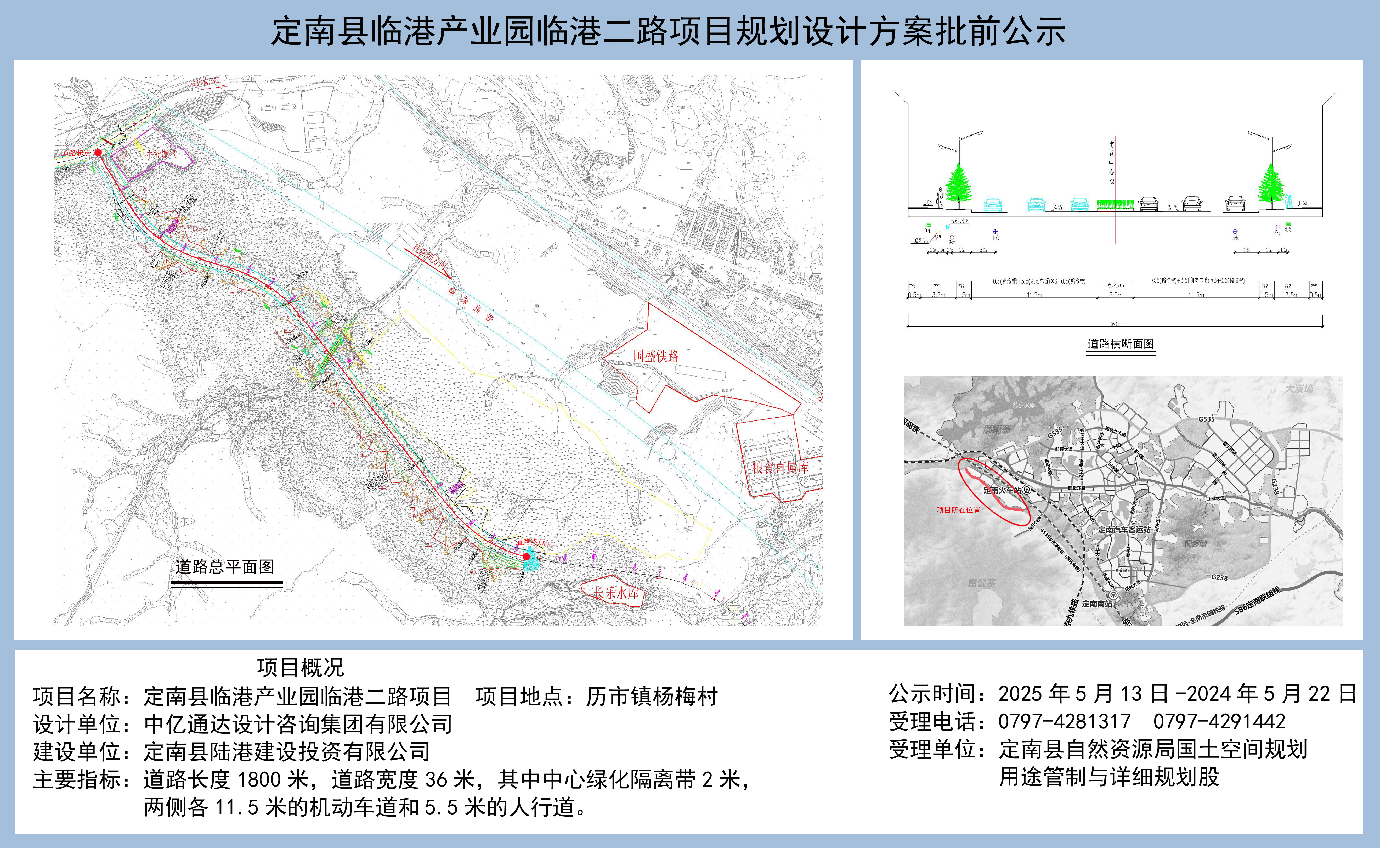 定南县临港产业园临港二路项目规划设计方案批前公示